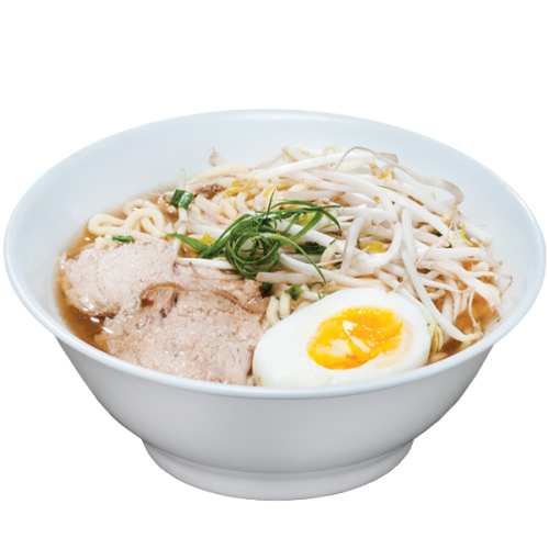 Macarrão mergulhado no caldo a base de shoyu , Temperos com carne de porco