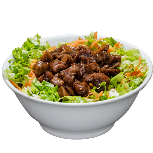 Alface, Cenoura, Frango Marinado, Gohan(arroz), Molho Teriyaki