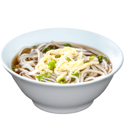 Cebolinha, Macarrão branco japonês, Molho japonês a base de shoyu, Tiras de Omelete